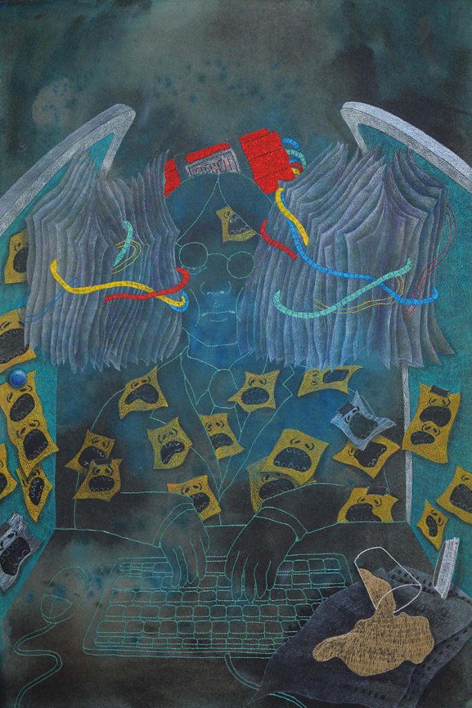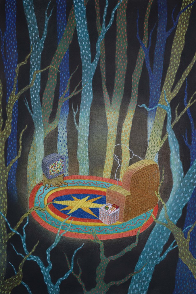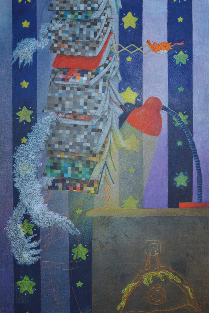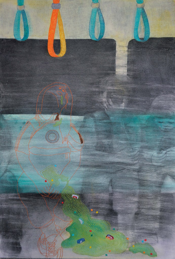 原子筆、色鉛筆、蠟筆、繡線
