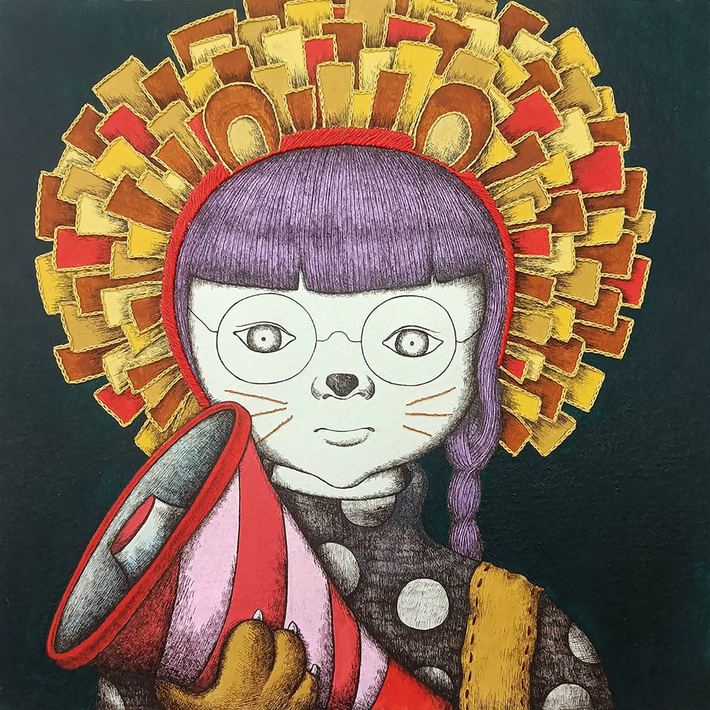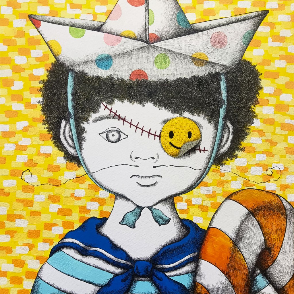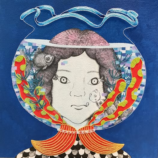 | 2025 35x35cm 墨水、壓克力顏料、色鉛筆、繡線 Ink, acrylic, colored pencil, embroidery thread |